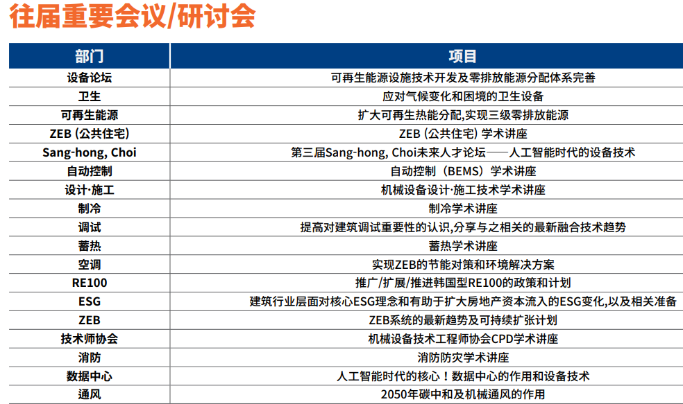一年一屆的韓國(guó)國(guó)際暖通、空調(diào)制冷、管道、機(jī)械展覽會(huì)HVAC KOREA,該展覽會(huì)由韓國(guó)機(jī)械設(shè)備建設(shè)協(xié)會(huì),韓國(guó)設(shè)備工學(xué)會(huì),韓國(guó)設(shè)備技術(shù)協(xié)會(huì),韓國(guó)設(shè)備設(shè)計(jì)協(xié)會(huì),韓國(guó)機(jī)械設(shè)備技術(shù)工程師協(xié)會(huì)主 辦,LH(韓國(guó)土地住宅公社),韓國(guó)綜合建設(shè)機(jī)械設(shè)備協(xié)會(huì)和機(jī)械工程師協(xié)會(huì)贊助,并組織展館構(gòu)建,舉辦會(huì)議/研討會(huì),以及 為機(jī)械設(shè)備專業(yè)人士舉辦交流招待會(huì),是韓國(guó)唯一一個(gè)綜合性的暖通空調(diào)和管道展覽會(huì),展示了從暖通空調(diào)系統(tǒng)、儲(chǔ)罐和泵到管道的全系列機(jī)械系統(tǒng),閥門、消防/衛(wèi)生/特種設(shè)備、數(shù)據(jù)中心等。這是一個(gè)獨(dú)特的暖通空調(diào)和管道行業(yè)的主要參與者聚集在一起展覽的平臺(tái),網(wǎng)絡(luò),塑造該領(lǐng)域的未來(lái)。我們邀請(qǐng)您參加韓國(guó)首屈一指的展覽暖通空調(diào)專業(yè)人士!今年為第11.它引領(lǐng)機(jī)械設(shè)備行業(yè)最新技術(shù)和趨勢(shì),匯聚眾多行業(yè)專家,此展將成為貴公司發(fā)展的基石