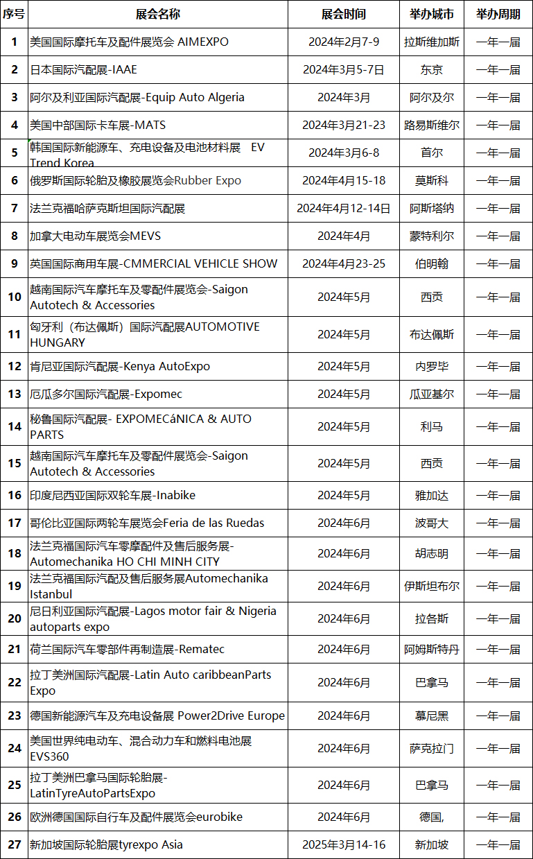 2024年全球國(guó)際汽配展會(huì)計(jì)劃表